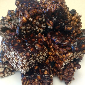 The squares are exactly what I wanted. They have lots of chocolate flavour, and they are perfectly gooey and chewy. I did add a bit more puffed wheat, as there was a pretty big pool of sauce at the bottom of my bowl after coating the original amount. But it would have been just as great had I followed the recipe exactly.